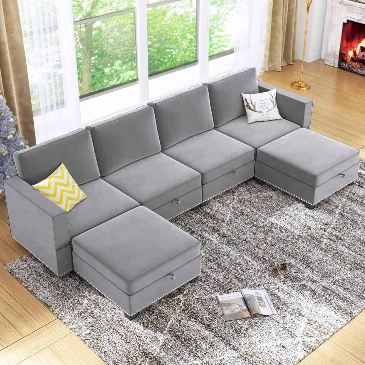 The LUXS HOME Modular Sectional Sofa is the ideal combination of function and style. Its convertible design allows you to customize the layout to your space, whether you prefer a U or L-shaped setup. The 6-seater capacity ensures ample seating for family or guests, while the built-in storage helps keep your living room clutter-free. Available in Beige, Light Gray, Dark Gray, and Blue, this sofa adds a touch of elegance and comfort to any home.